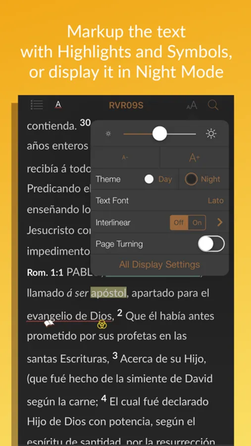 • Take notes, create highlights, and add bookmarks that will sync with the desktop version of Accordance