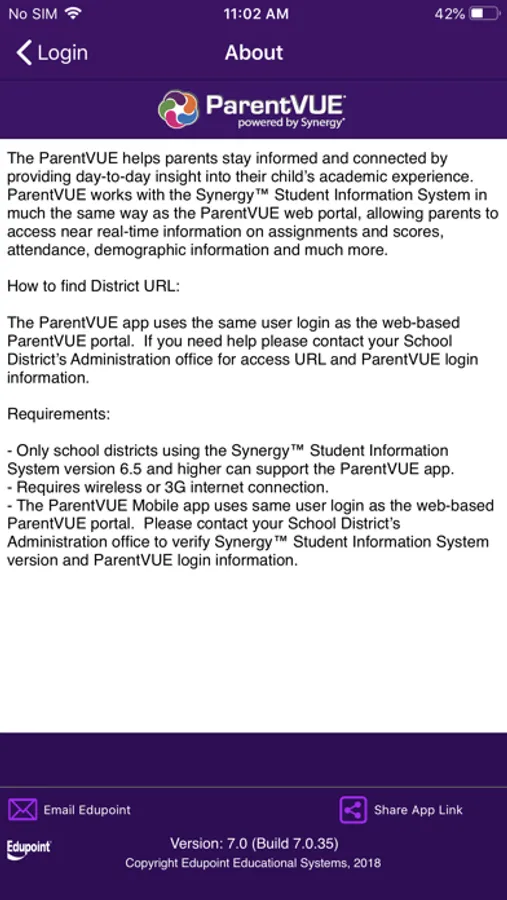 • Only school districts using the Synergy™ student information system version 6.5 and higher can support the ParentVUE for the iPhone application.