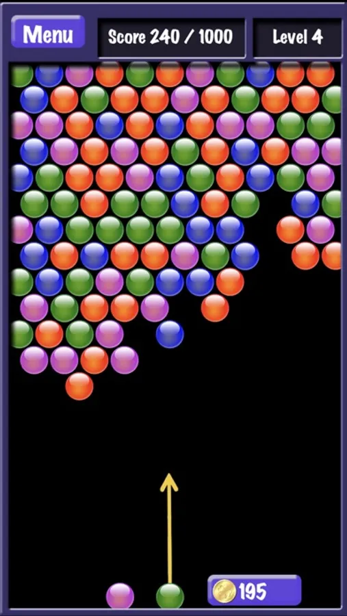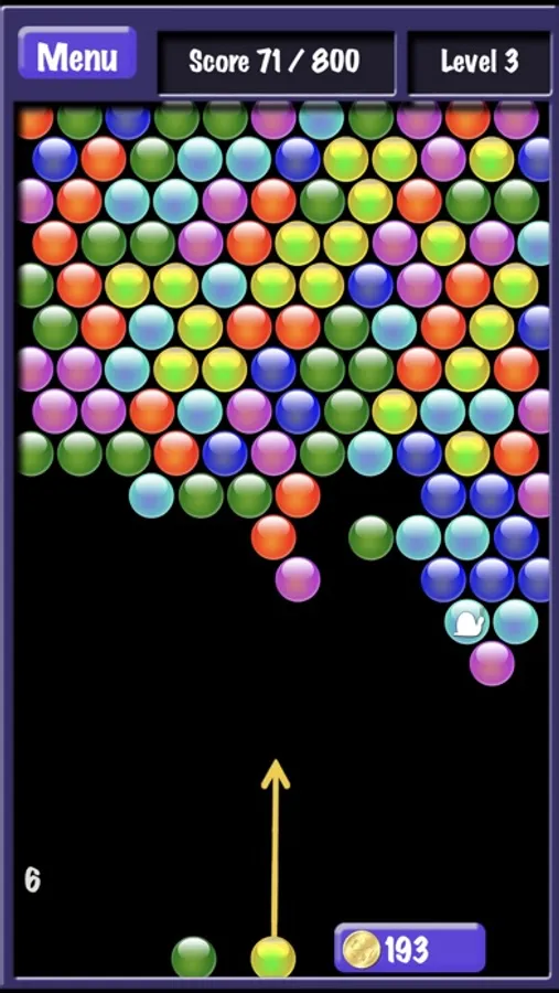 Match 3 or more bubbles of the same color to make them disappear and get score points.