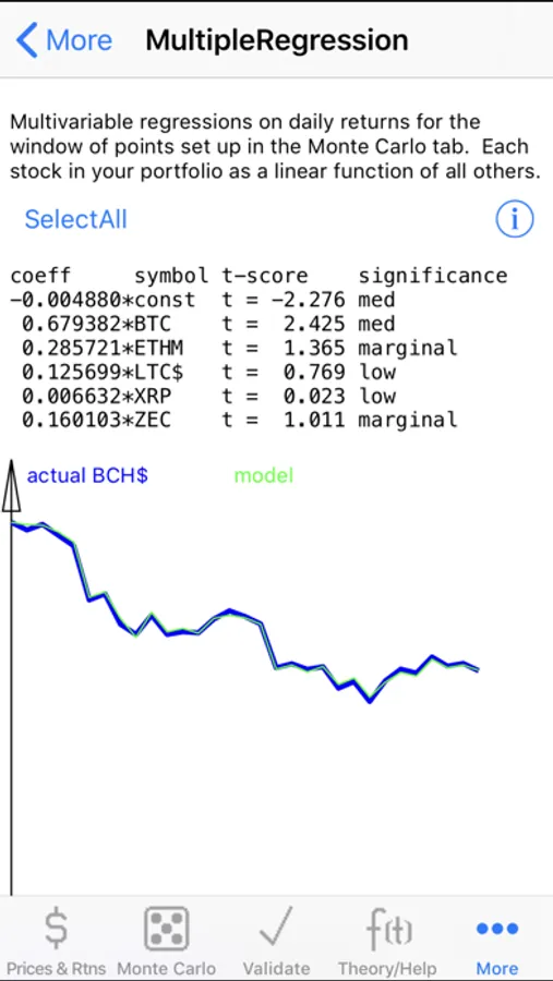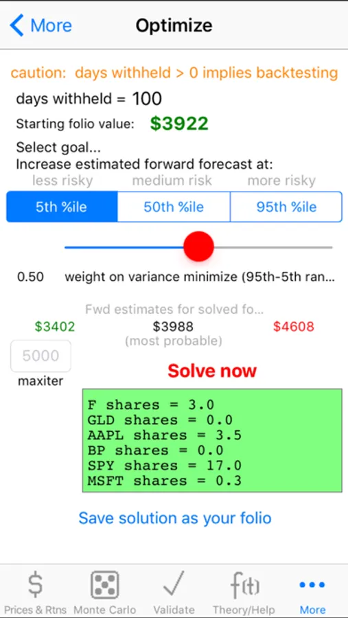 Stock price / probability risk analyzer & optimizer for the common man. See also our new support for top cryptocurrencies. Now with portfolio support, pairwise correlation/regression analysis of daily returns, and portfolio optimization. Computes forward (price,probability) for your share-weighted portfolio.