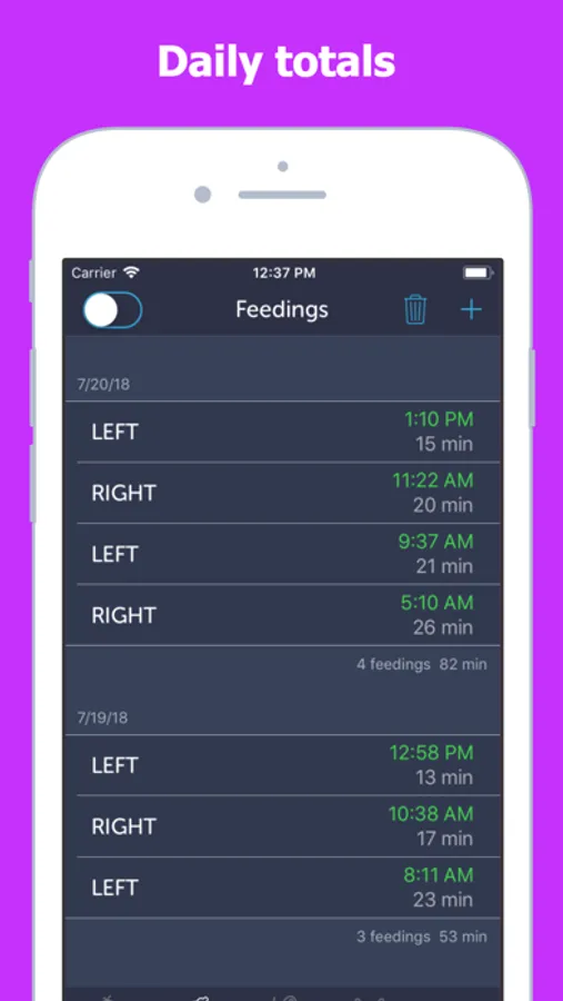 Baby Feeding Log is designed to be the easiest breastfeeding app and baby tracker for feedings, sleep, and diaper changes. You can quickly see the last feeding time and what side was used.