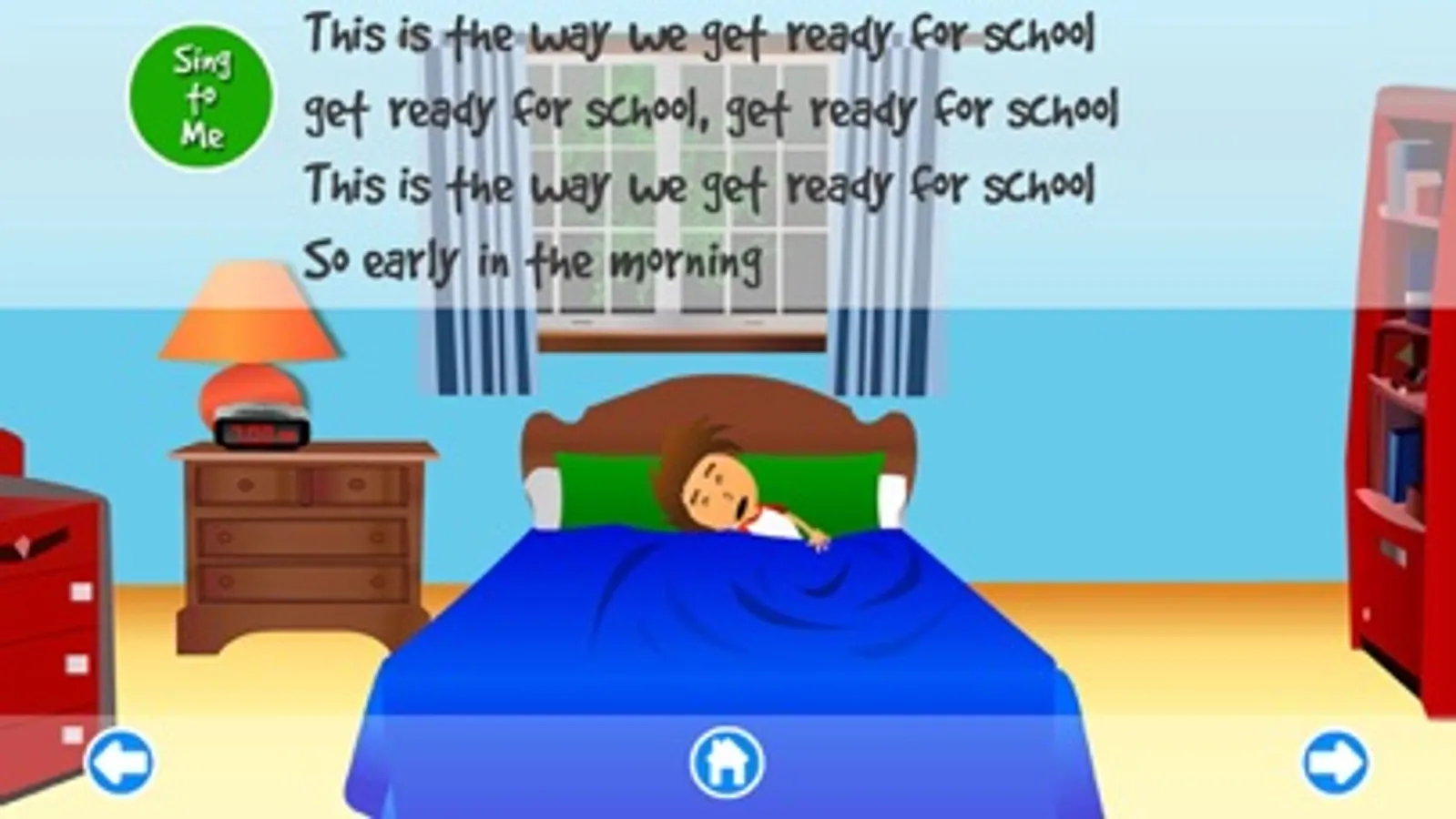 Kids interact with the catchy "Ready for School" song sung to the tune of "Here We Go Round the Mulberry Bush". Sing-A-Long Settings: 1. Words Without Music; 2. Music Without Words; 3. Music With Words