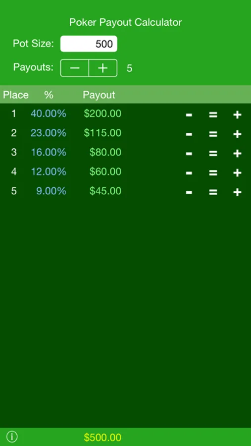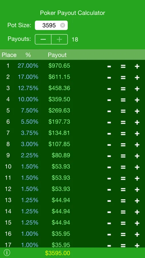 Use Poker Payout Calc at your next poker tournament to determine quick and accurate payouts.
