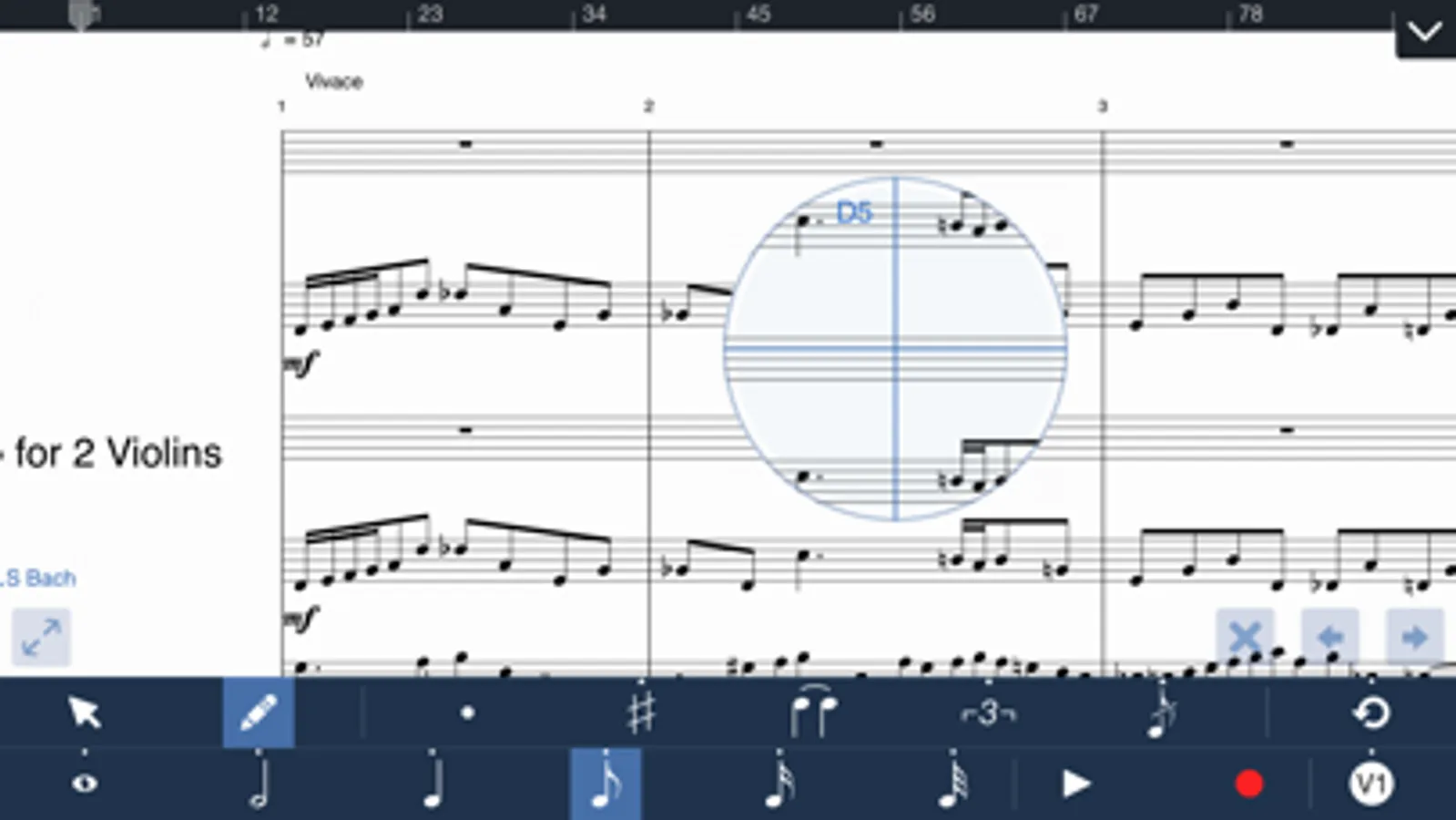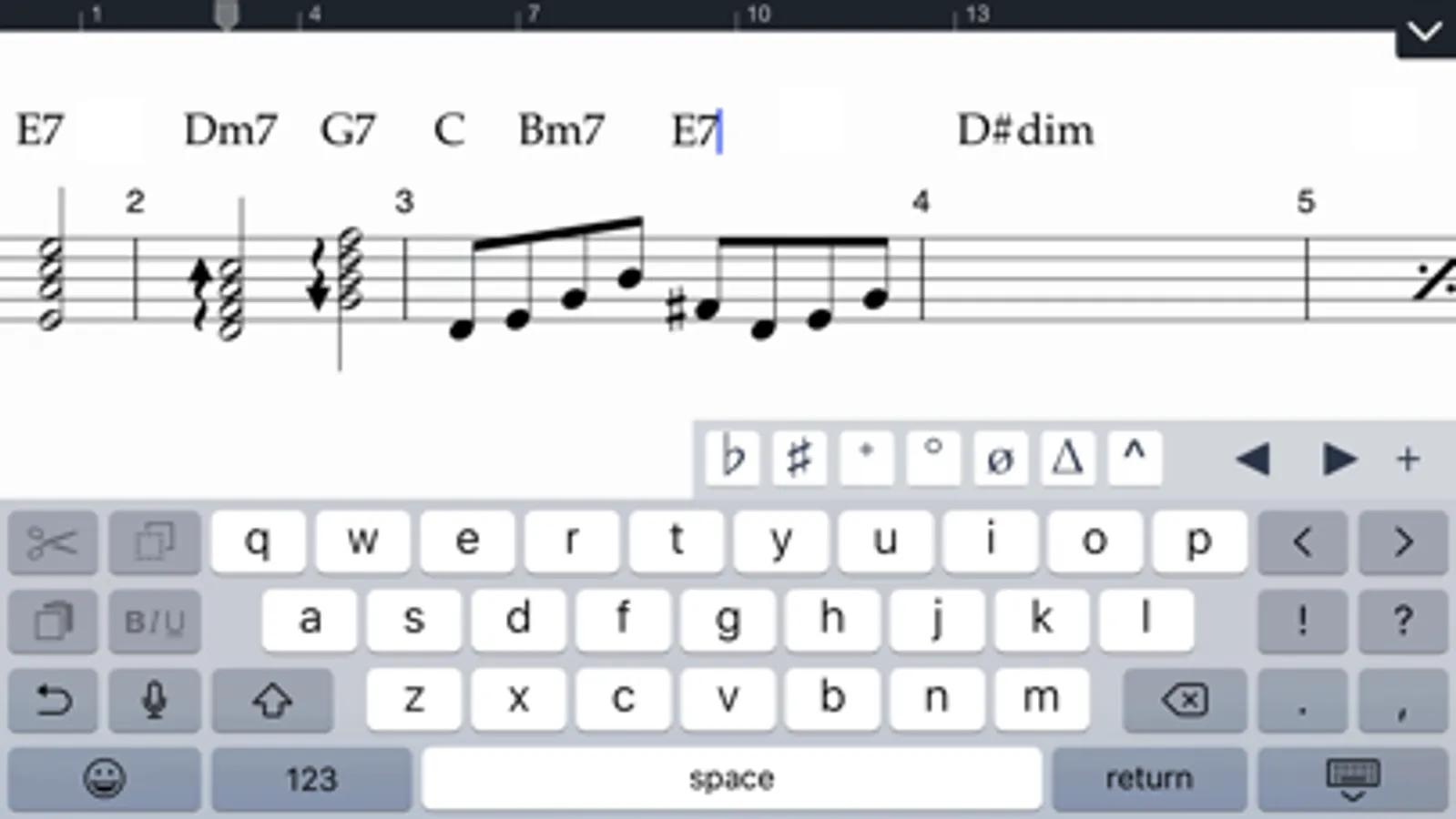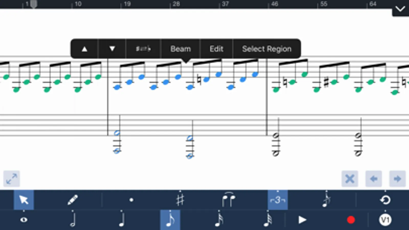 Versions 4 & 5 take greater advantage of the iPad touchscreen. With shortcuts and contextual menus to edit note & bar properties, many of the commonly used editing commands are right at your fingertips.