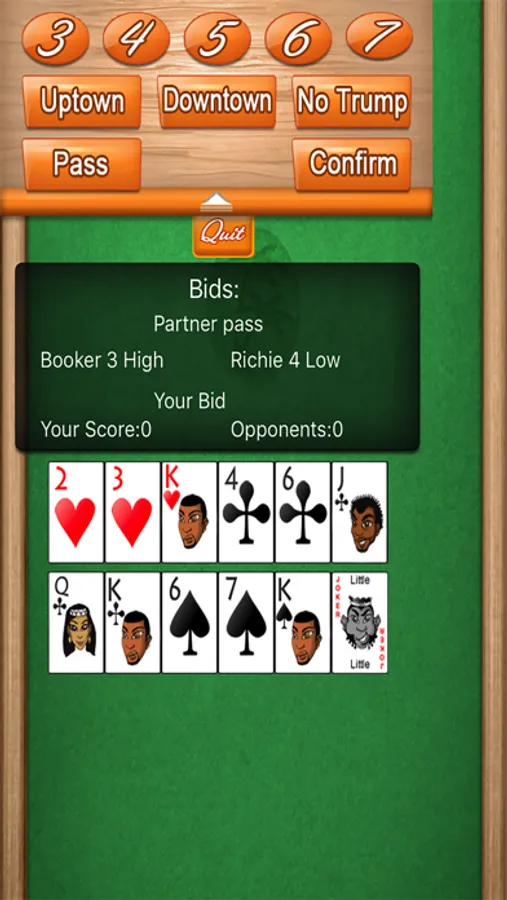 - Your hand is automatically arranged based on an uptown/downtown bid and the trump suit