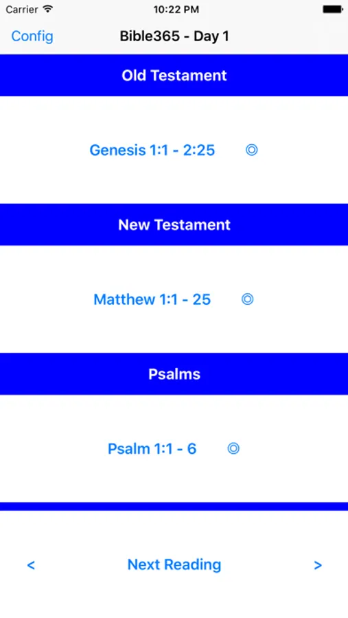 Bible365 provides daily readings to enable you to read all the Bible in a year. It links to BibleGateway to load each of the referenced passages into a web page for you to read. Once you have linked to a passage, Bible365 remembers for you which passages you have already read.