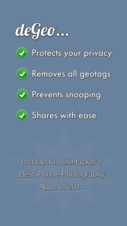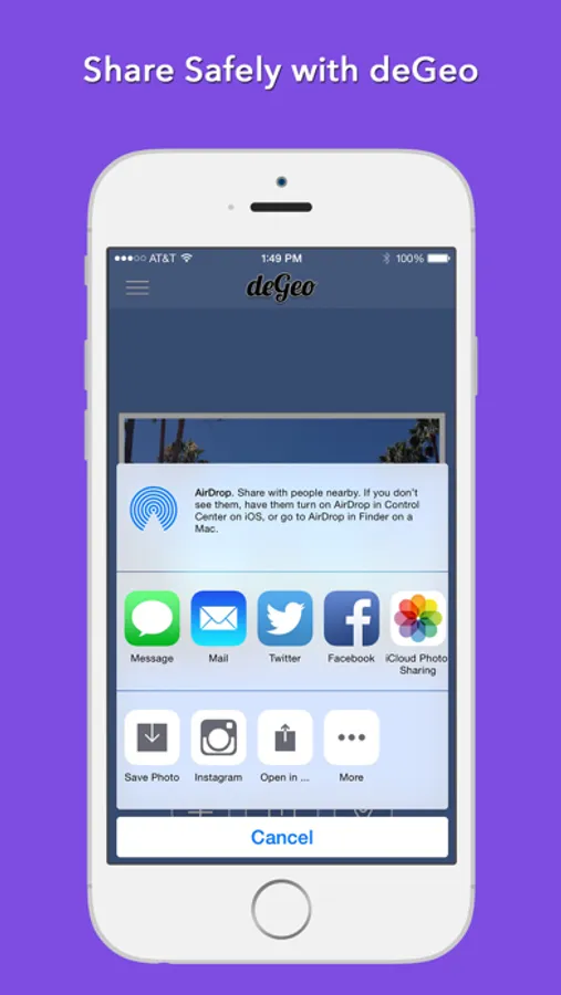 deGeo is a photo sharing privacy utility that removes the geotags from your photos before sharing to Twitter, Facebook and the web. Share and save pictures with ease while safeguarding your privacy and personal location.