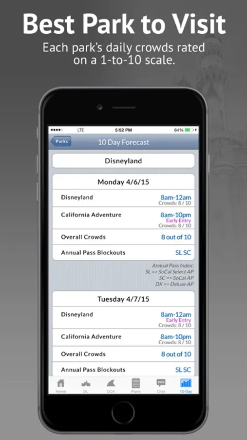 -A Crowd Calendar showing you how busy each park will be over the next ten days.