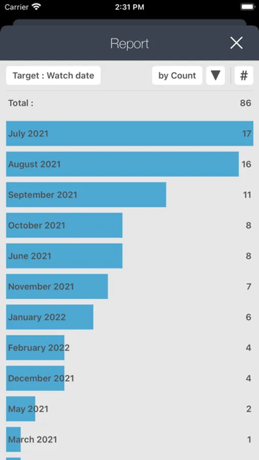 With the analysis feature, you can see at a glance how many movies you watch and what genres of movies you prefer!