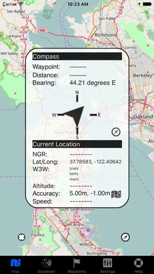 - Compass and bearing (either using GPS and movement tracking or hardware compass if available)