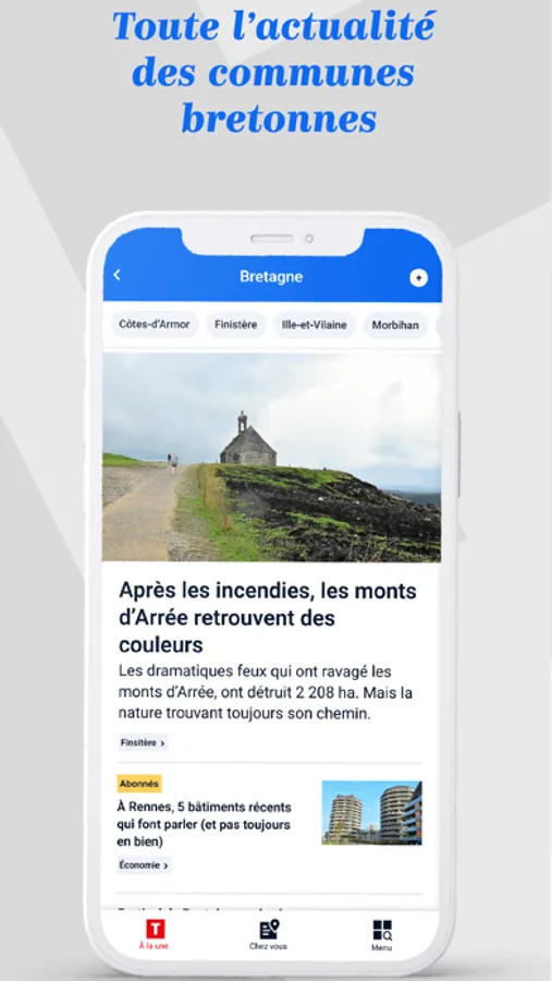 - Un accès rapide à toute l’actu de plus de 900 communes couvertes par la rédaction en Bretagne (Rennes, Brest, Lorient, Vannes, Quimper, Morlaix, Saint-Malo, Dinan, Auray, Saint Brieuc, Lannion, Guingamp, Pontivy…). Retrouvez les articles de toutes nos éditions locales.
