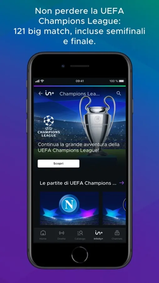 In più, puoi attivare Infinity+ con il cinema e il grande calcio europeo: non perdere la prossima stagione di UEFA Champions League! Su Mediaset Infinity potrai goderti 121 big match incluse semifinali e finale, 17 partite gratuite e 104 su Infinity+.