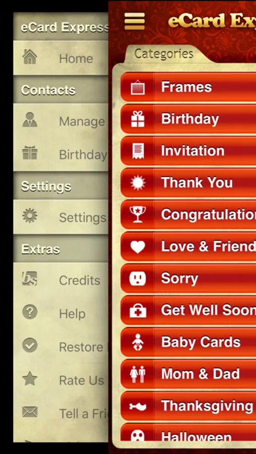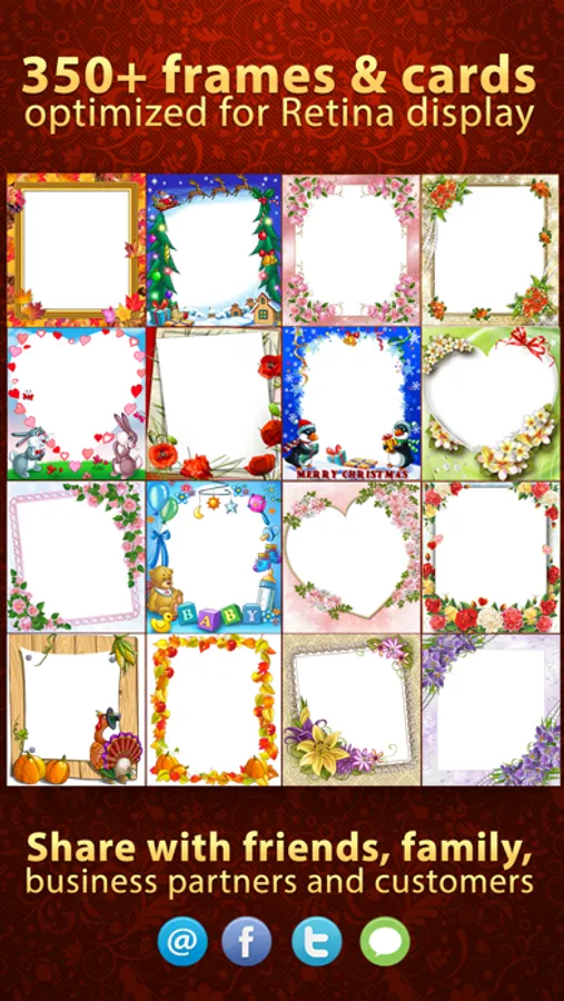 With a large collection of classic & cartoon eCards in virtually every possible category, and a very simple, user friendly and intuitive interface, eCard Express makes it easy for you to share and send the high quality cards via Email, Facebook, Twitter, iMessage. With as little as 5 taps, you can send an eCard to your friends, family, and loved ones, as well as business partners and customers!