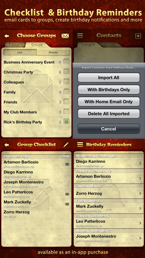 Internal Address Book & Birthday Reminders (in-app purchase):