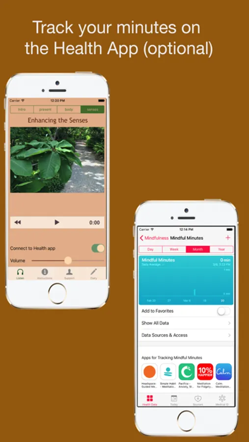 INTEGRATION WITH HEALTH APP - allows tracking of "Mindful Minutes"