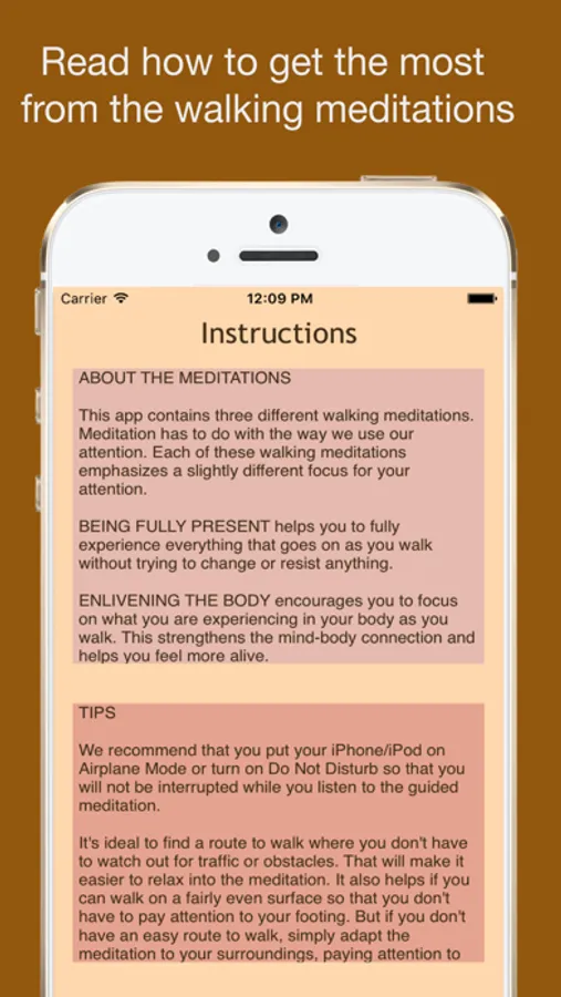Our approach to walking meditation is easy and informal. As you walk, you are gently guided to experience your body and your surroundings fully. Letting go of thoughts about the past and future allows you to experience the present moment more fully.