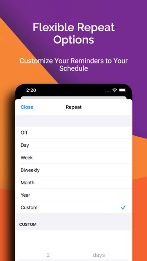 ◆ Repeat Reminders: Customize daily, weekly, monthly, or custom intervals to fit your schedule.