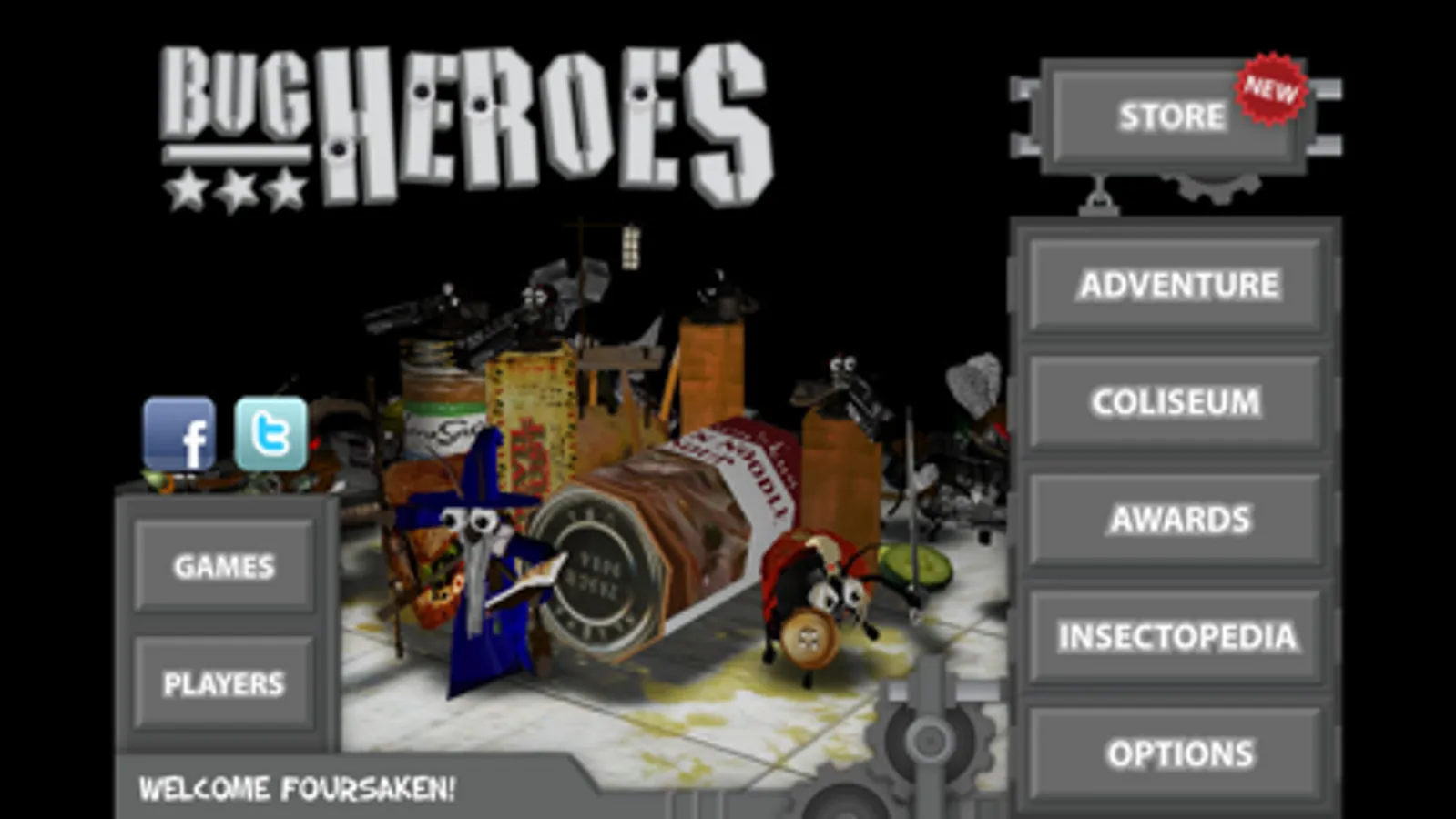 From the creators of N.Y.Zombies comes an all new blend of action, adventure, castle defense, and role playing elements! Master up to nine legendary Bug Heroes, including a sword wielding Spider assassin, an armored Beetle warrior, a machine gun toting Ant engineer, and more! Shoot, slice, dice, and bash your enemies with a variety of skills, abilities and equipment. Stockpile food, fortify your base, and defend it from hordes of hungry bugs. Explore a variety of familiar landscapes from an all new miniature perspective, collecting food, coins and other items. Enter Bug Heroes, an epic fantasy world you never knew existed!