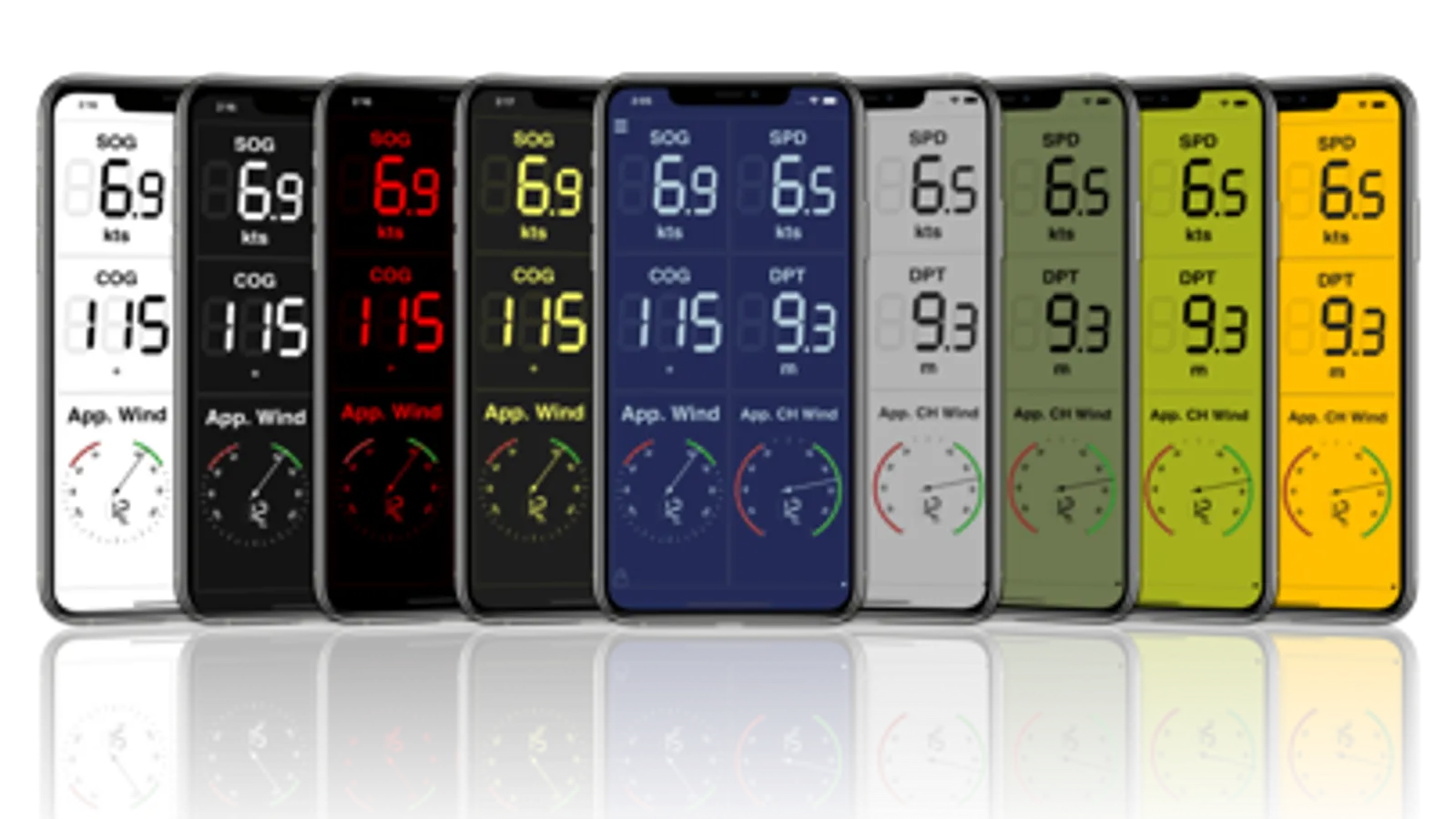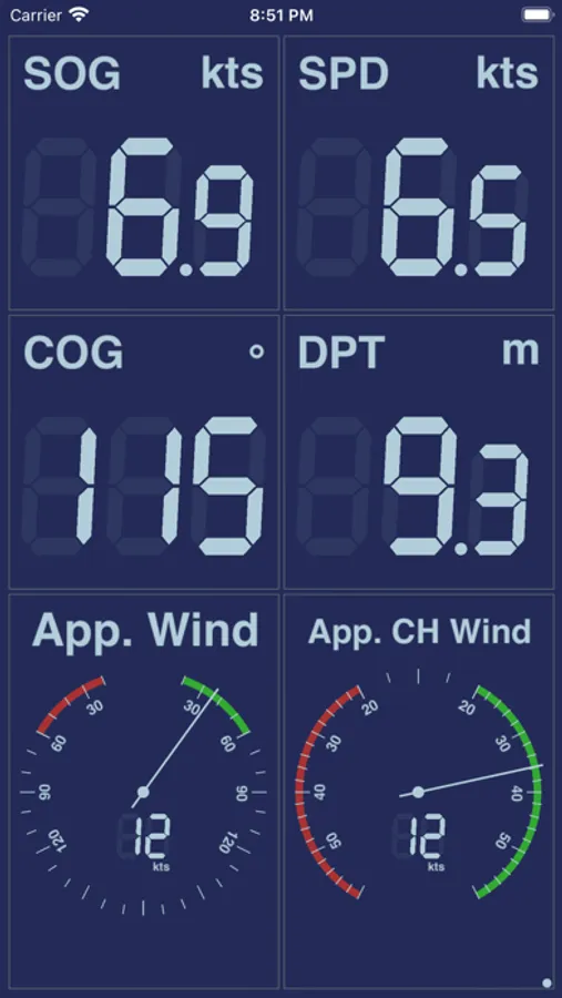 ∙ Independent configurable units for distances, depth, speed, wind speed, temperature, pressure