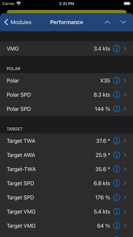 ∙ Performance: Polar SPD, Target TWA, Baet, Run,...