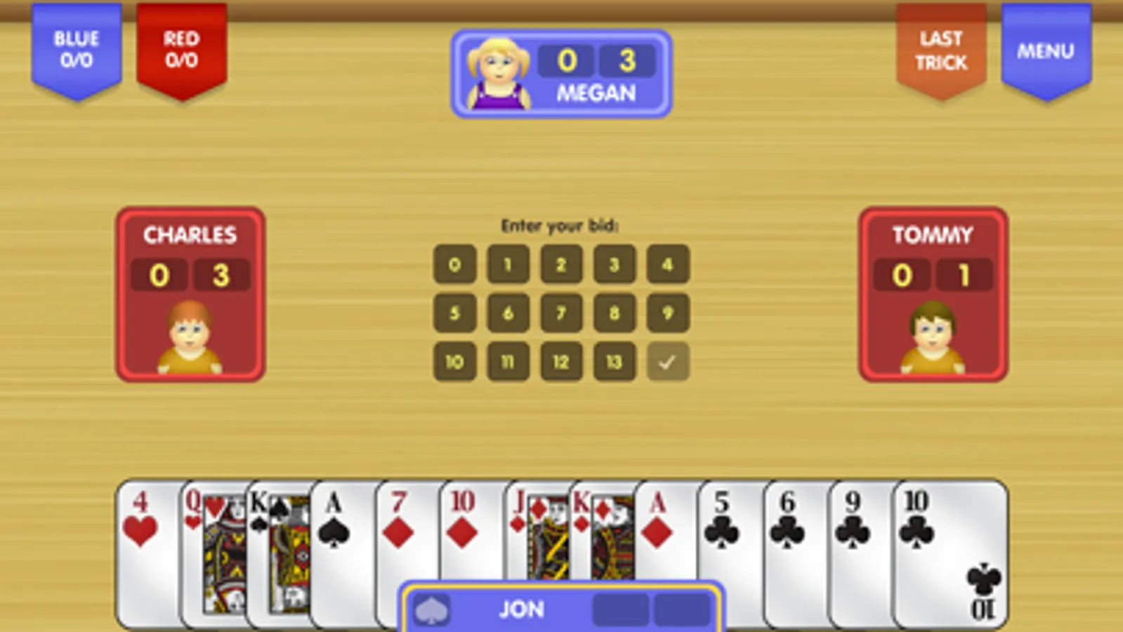 Spades Free features an outstanding artificial intelligence engine. Three different difficulty levels ensure that you can play against a computer opponent that matches your skill level.