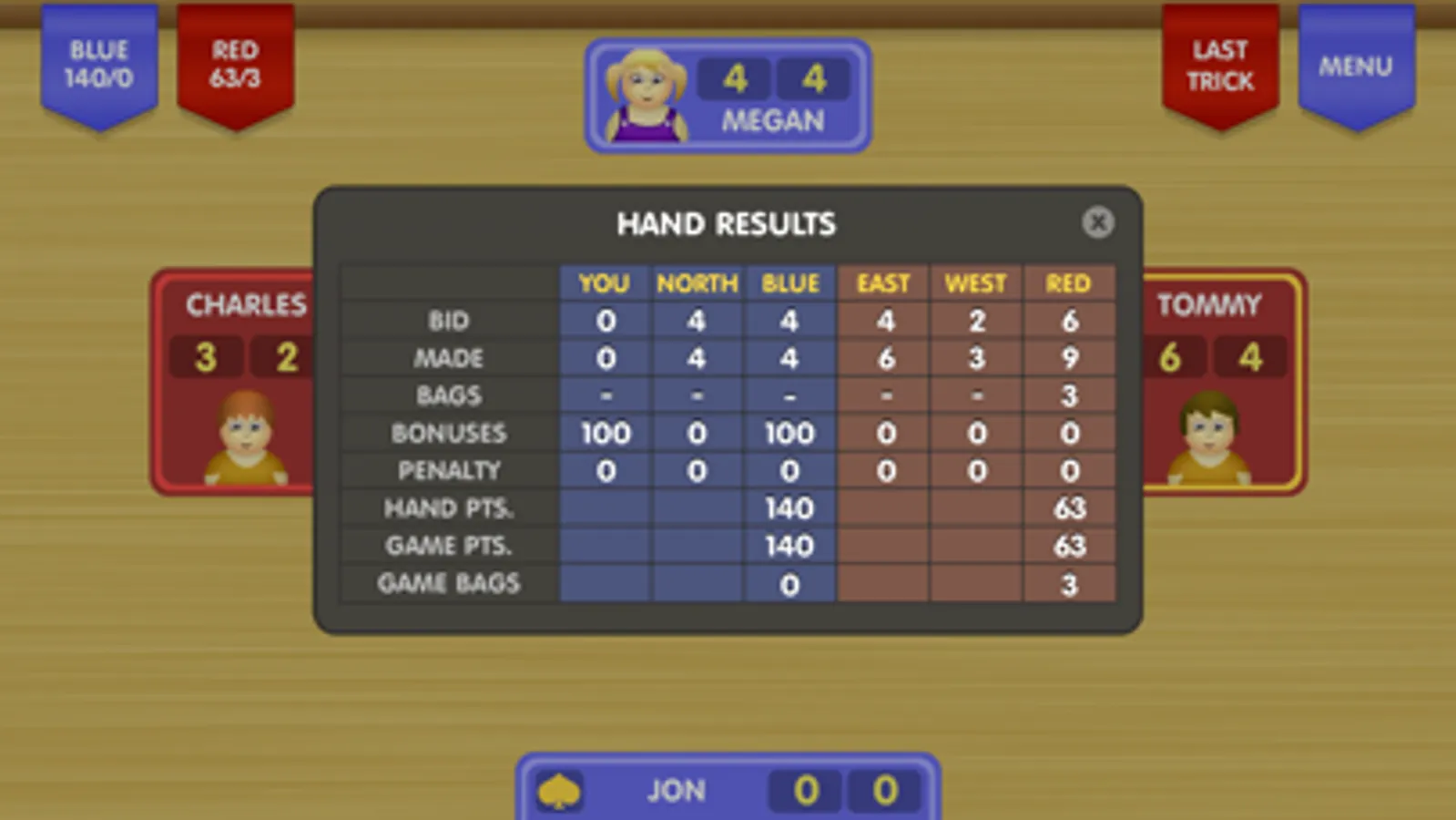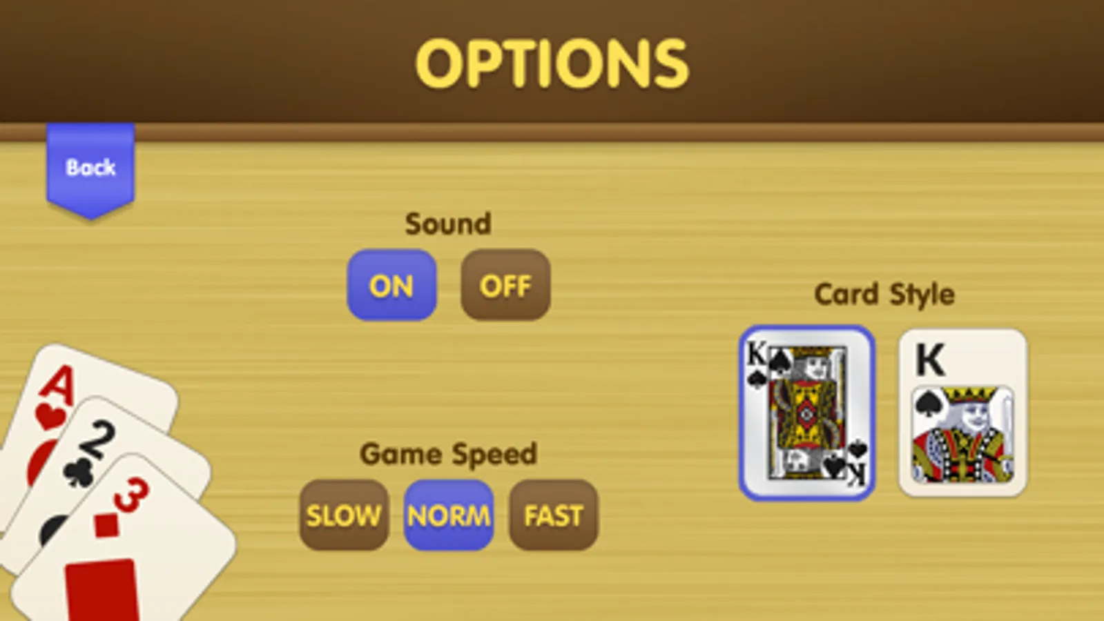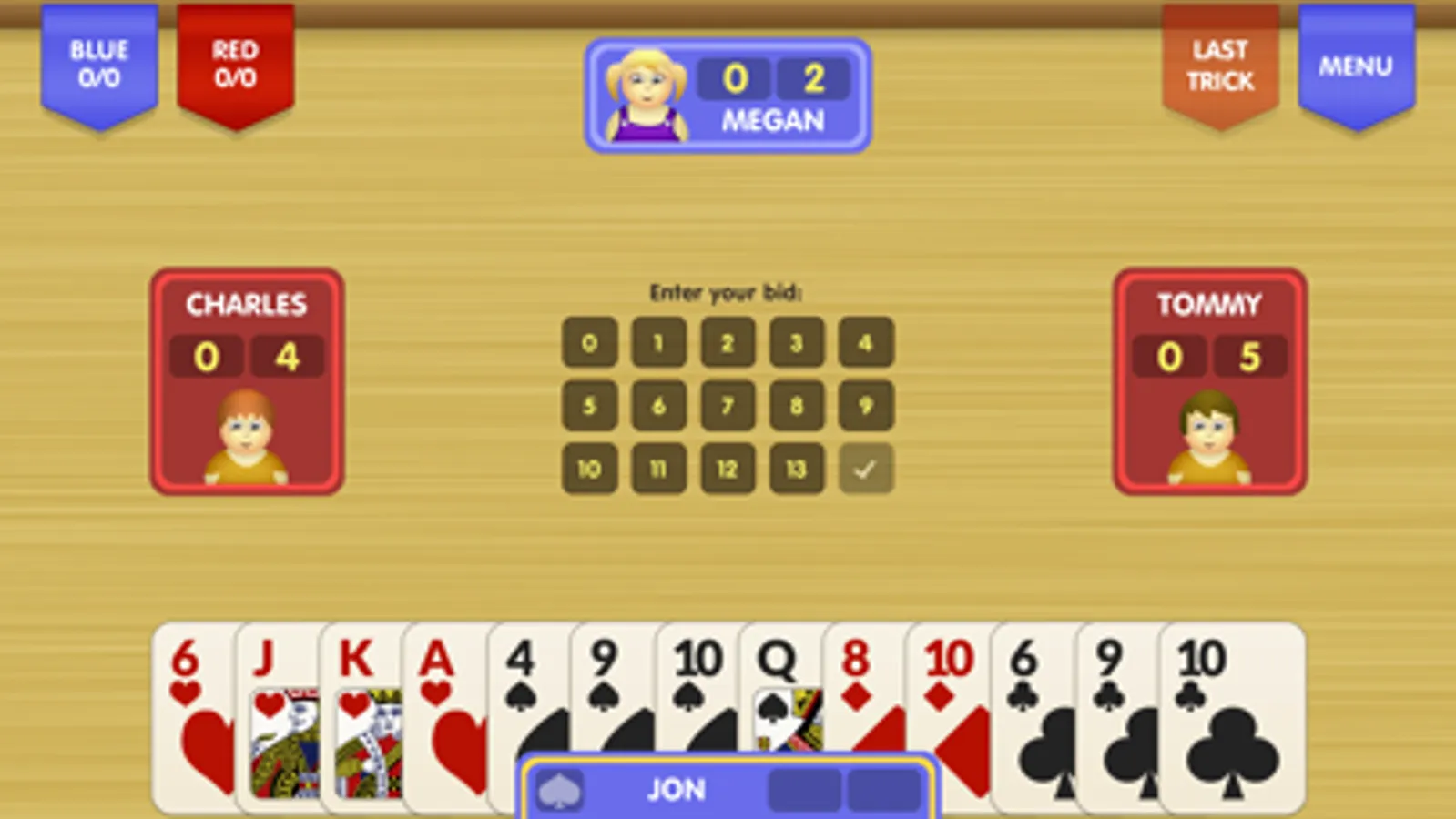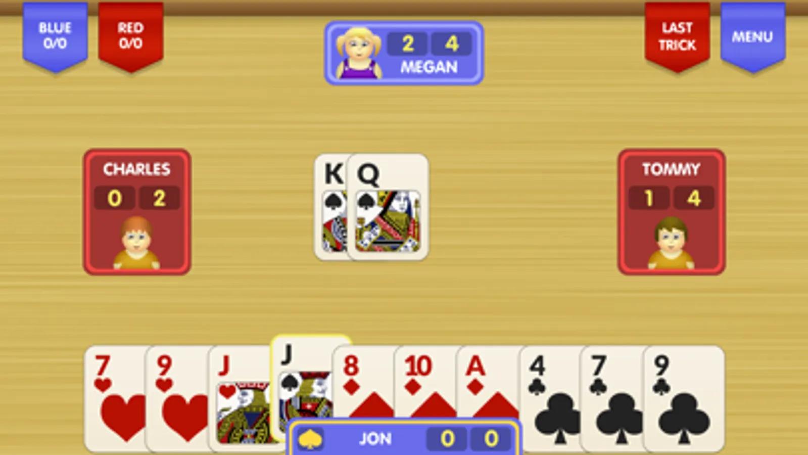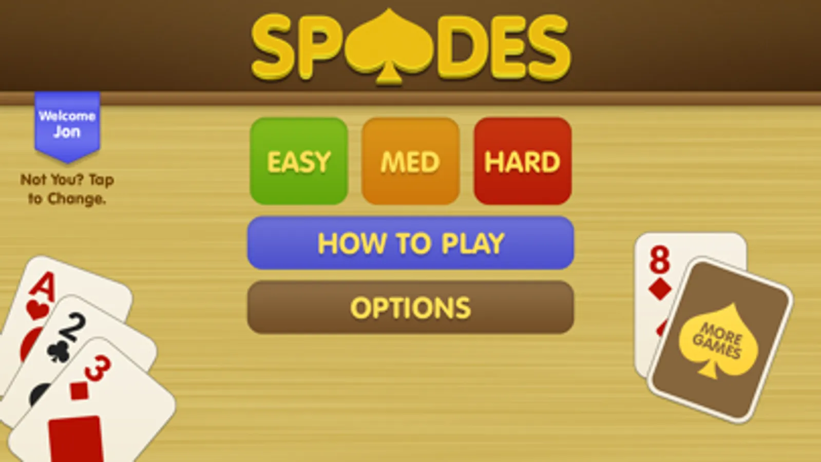 Spades Pro features an outstanding artificial intelligence engine. Three different difficulty levels ensure that you can play against a computer opponent that matches your skill level.