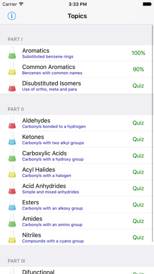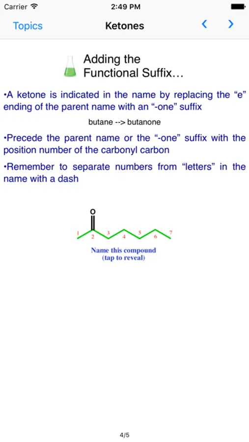 Learn Organic Chemistry: Nomenclature 2 will help you master the naming of organic compounds. It features clear, concise, interactive lessons on how to name compounds with functional groups commonly encountered in a second semester organic chemistry course. Each lesson includes a quiz to help you practice what you've learned and evaluate your level of comprehension.
