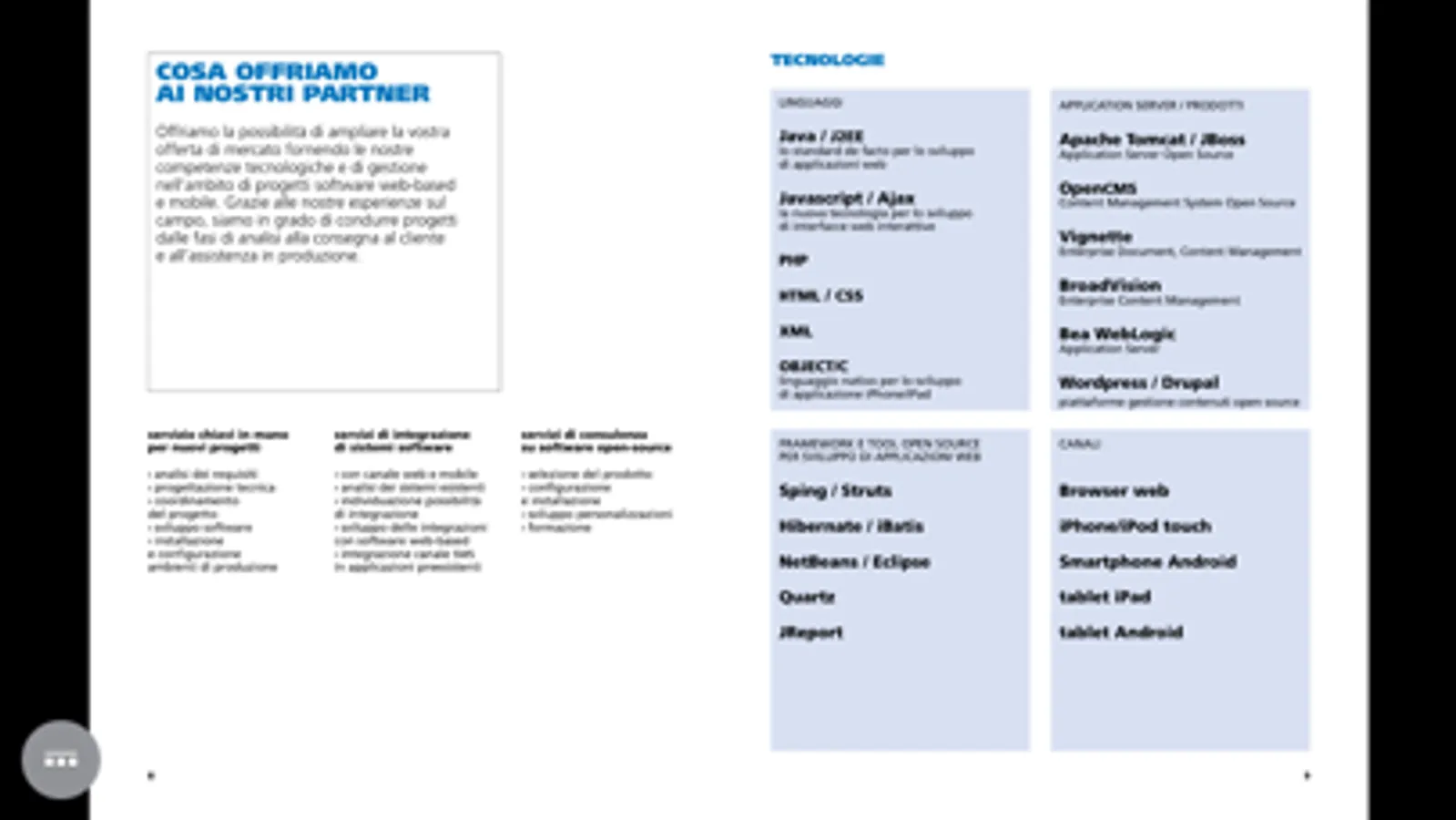 Brochure in formato iPad con i progetti realizzati per i clienti ed i prodotti gestiti direttamente.
