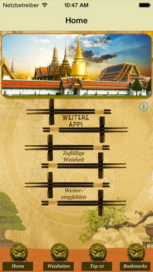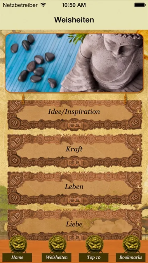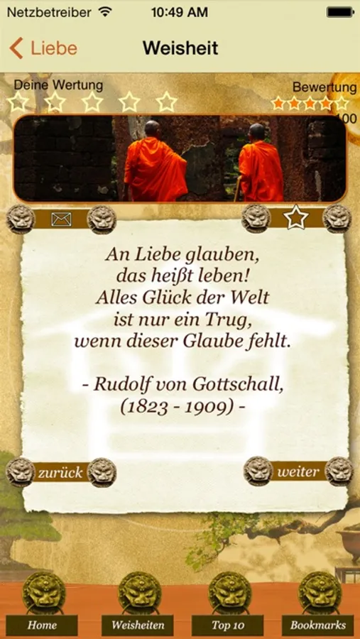 • ABSTIMM-FUNKTION: Bewerten Sie die Weisheiten, und bestimmen Sie so die ersten Weisheits-Charts des App-Stores - oder schauen Sie einfach nach, welche Zitate von den anderen Usern geliebt werden.