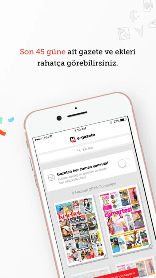 Günlük gazetenizi ve tercih ettiğiniz ekleri her ortamda yanınızda kolayca taşımanız için hazırlanmış uygulama, internete bağlandığında otomatik olarak cihazınıza yükleyecektir. Böylece gün boyunca internete tekrar ihtiyaç duymadan okumaya devam edebileceksiniz.