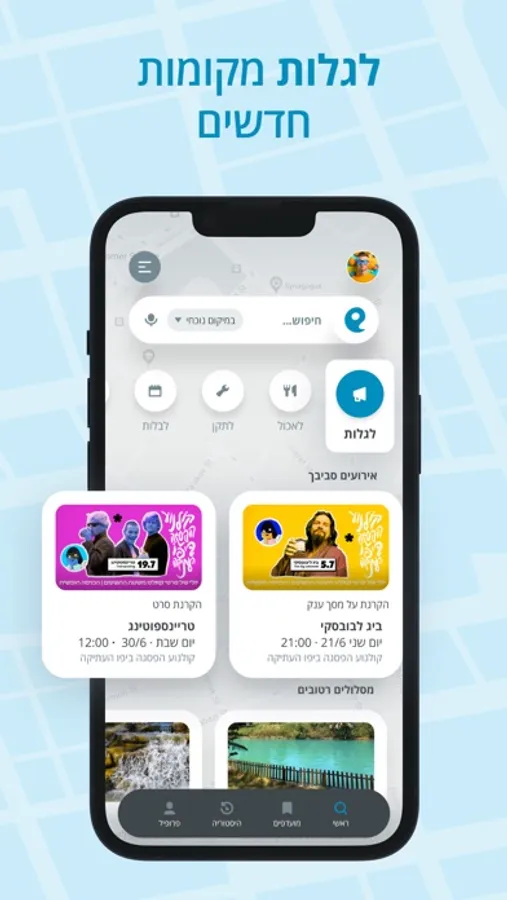 • בדרכים? חיפוש "על הדרך" מאפשר לך לבחור עסקים ומקומות לאורך המסלול ממיקומך הנוכחי כל הדרך אל היעד.