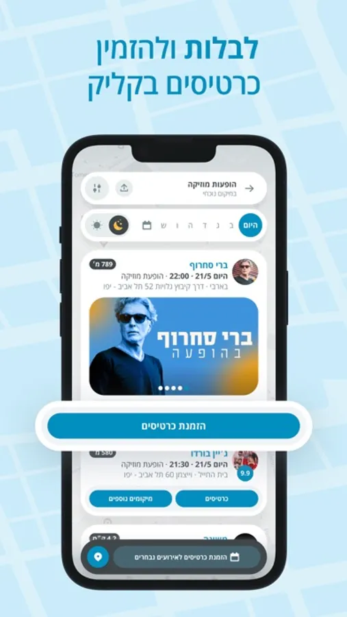 • יוצאים לבלות? הופעות, סטנד אפ, סרטים, אירועי ספורט ומסיבות - כל האירועים לפי סוג, מיקום ותאריך.