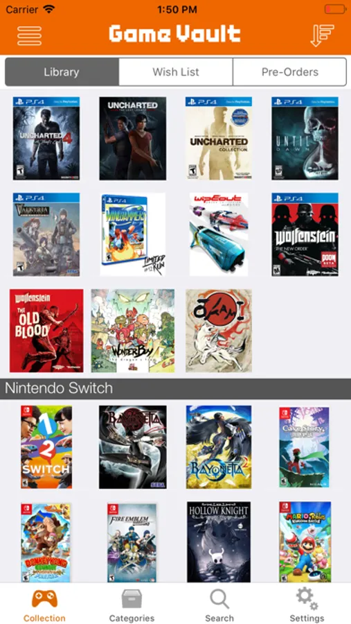 Manage multiple collections: library, wish list, and pre-ordered games. Browse your games in a variety of different ways: title, platform, genre, publisher, and more! Game Vault offers other features such as