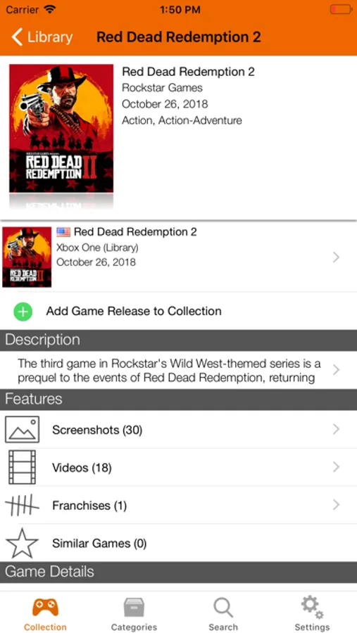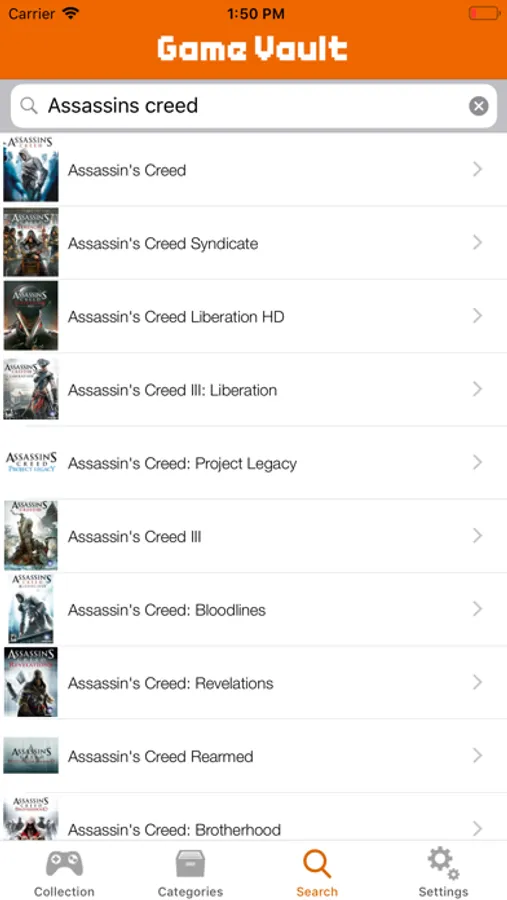 Build your gaming collection with Game Vault using GiantBomb’s expansive database (www.giantbomb.com). Using this database provides you with a massive amount of information for each game, including