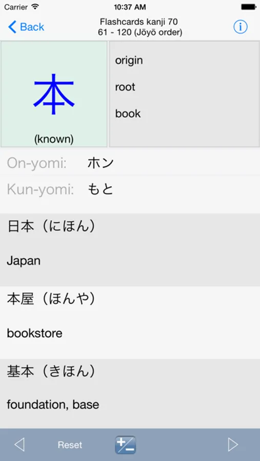 Study tool to memorize Japanese kanji, radicals (bushu) and primitive elements.