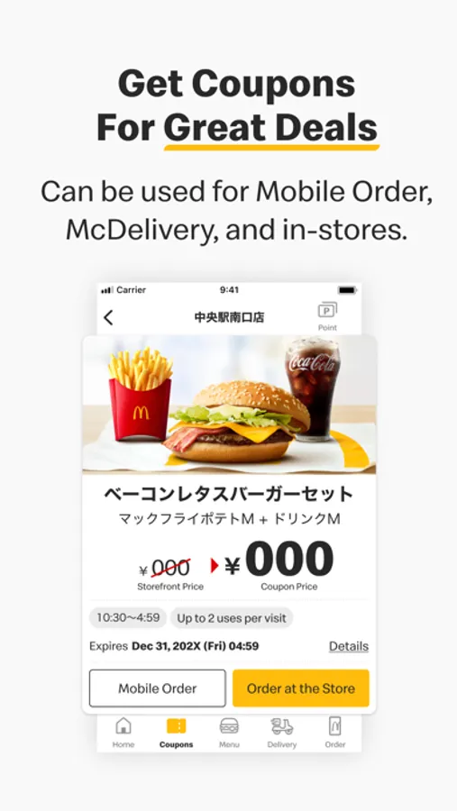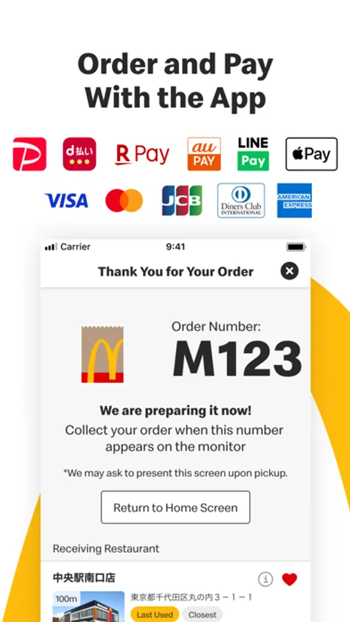 McDonald's official app for Japan has always given you access to coupons and other valuable information. Now you can place an order right from the phone, with contactless payment. Take your time to choose what you want, and skip the order line.