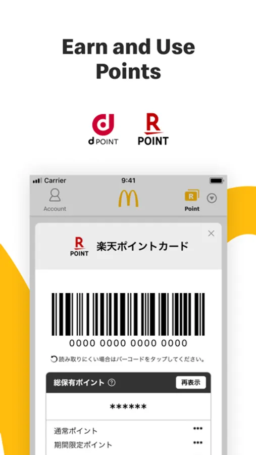 You can use loyalty point cards by logging in with your Rakuten ID or Docomo D Account from the ""Point Card"" button in the upper-right corner of the screen.
