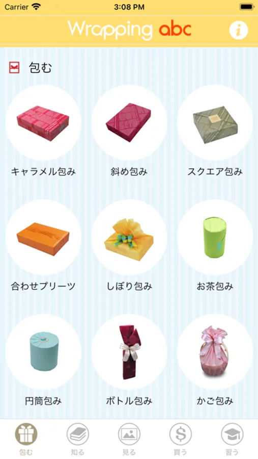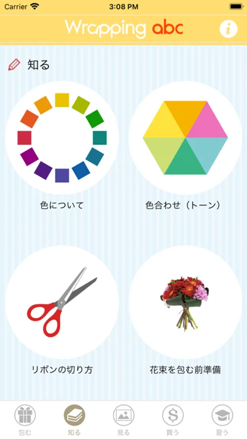 "Wrapping abc" is an application made by Tokyo Ribbon Co. Ltd, established in 1921, to introduce varieties of ways of tying ribbons, and wrapping gifts.