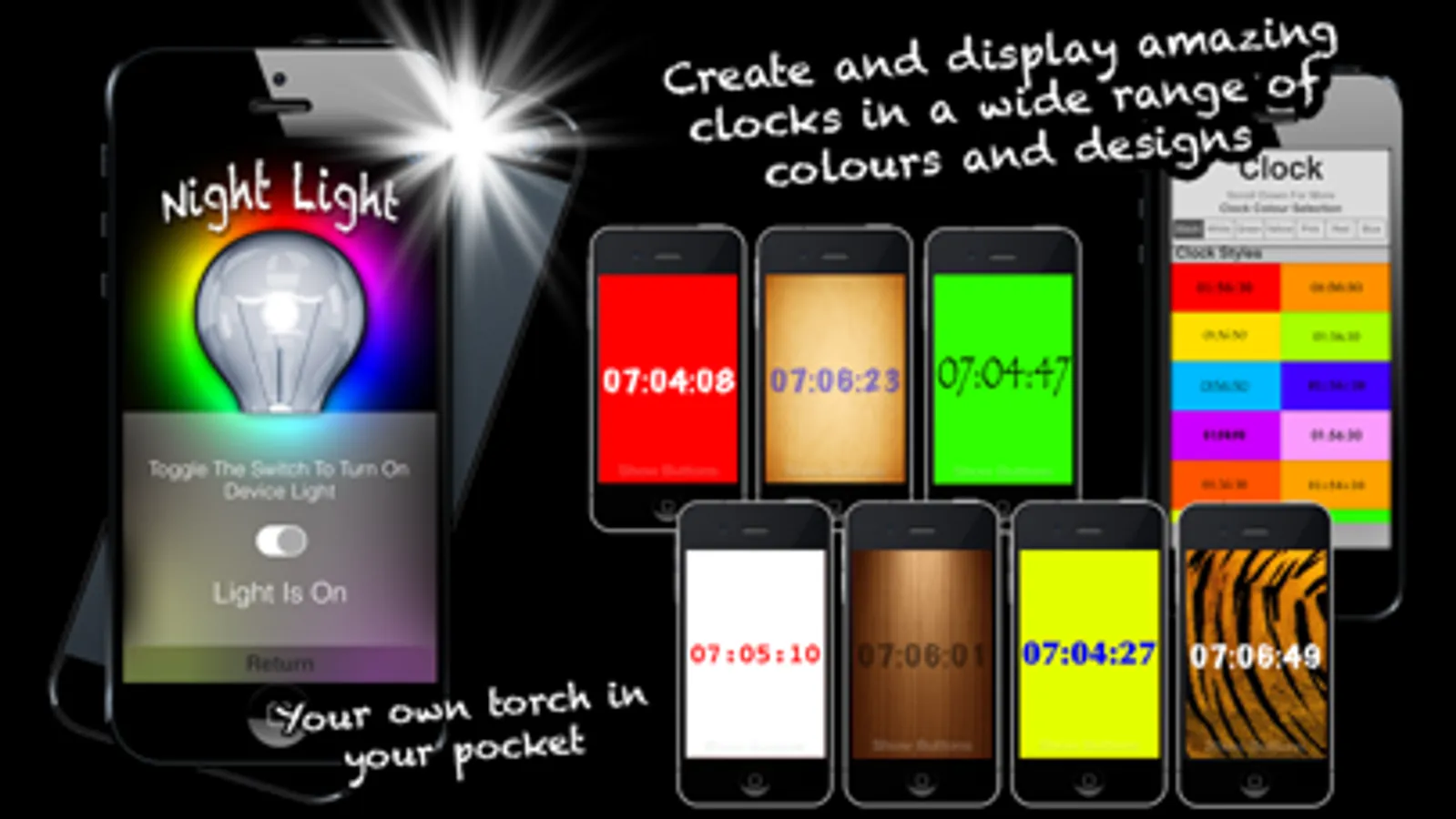 Place your device in your docking station or on a table, turn the lights out and watch Night Light glow up even the darkest room with over 70+ templates and 60+ colours to suit everyones style.