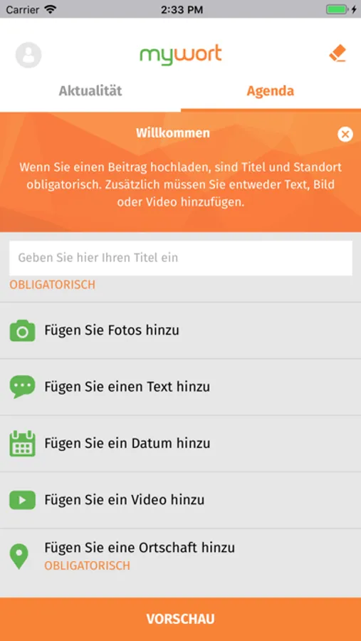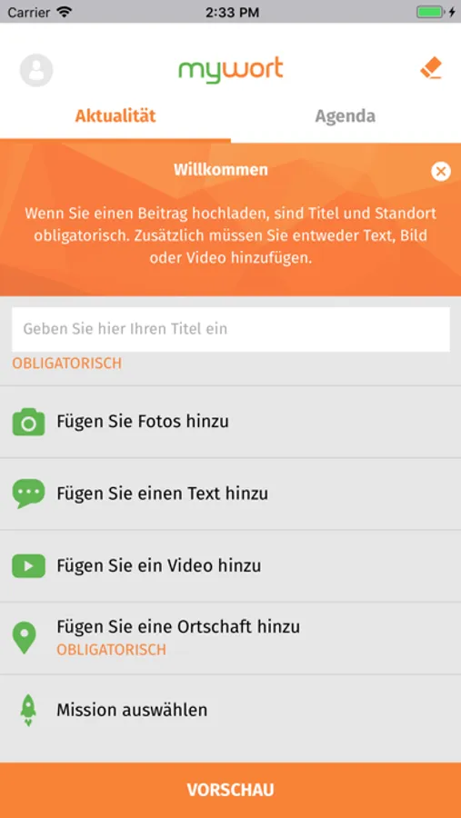 Schau Dir Deinen Aktualitätsbeitrag in der Vorschau an und schick ihn dann direkt auf mywort.lu