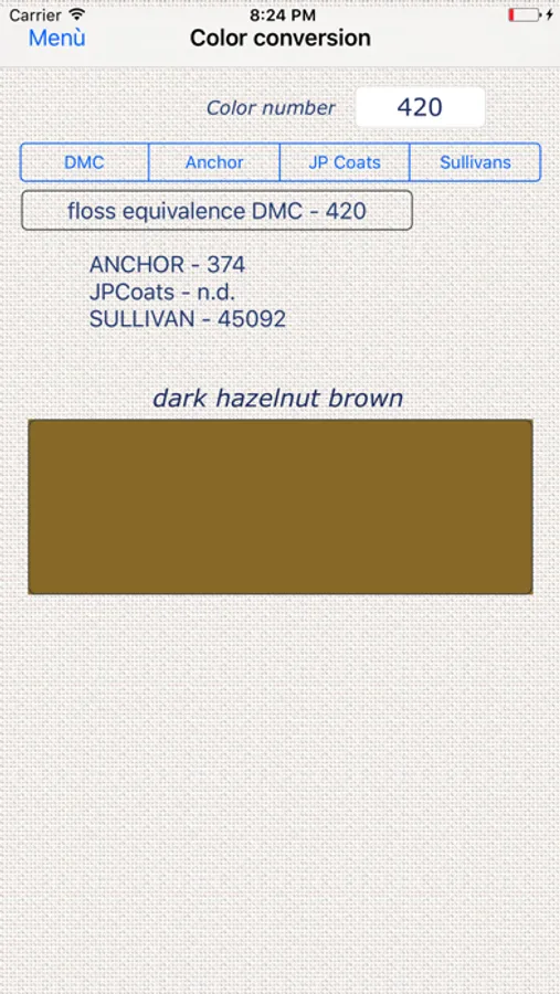 With the two available tools we will be able to convert colors of four brands of yarn and calculate the size of the canvas embroidery.