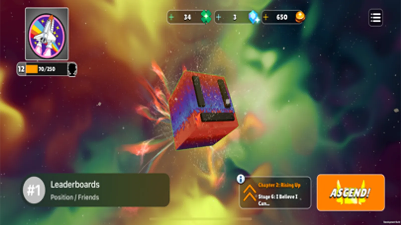 Chapter 1 is where it all begins; as you navigate your cube through stages of increasing difficulty and funky colored platforms, you will be challenged to discover unique and exciting ways to clamber to the top, at least at first. Remember, there may be more ways than one to ascend! Earn three stars in every stage and unlock a super duper secret never before seen, special stage (SDSNBSSS). ;D
