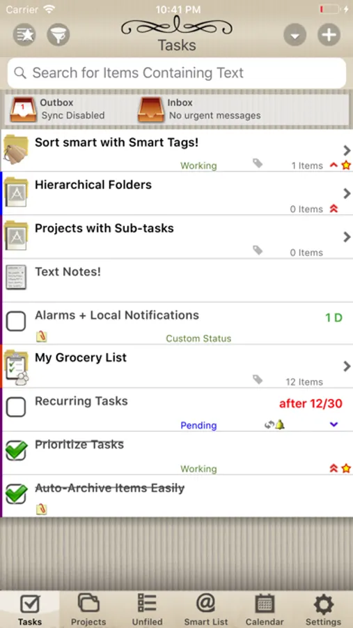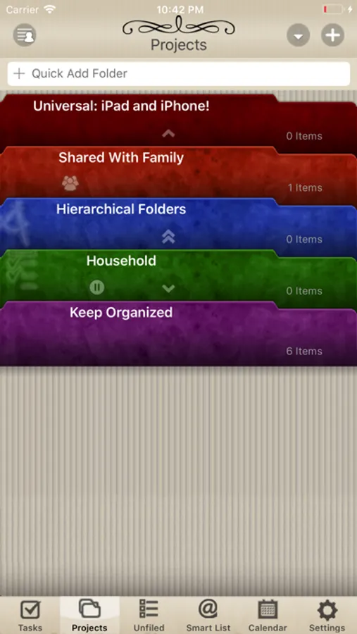 - An Unfilled Items organizer to store quick lists and notes. Move items to Projects organizer when you have the time.