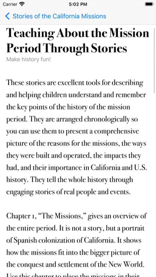 > For Teaching: Teacher’s guide suggests ways to use the stories and other information to help students understand and feel the lives and adventures of the 19th-century priests, soldiers, natives, and their visitors. Makes history fun!
