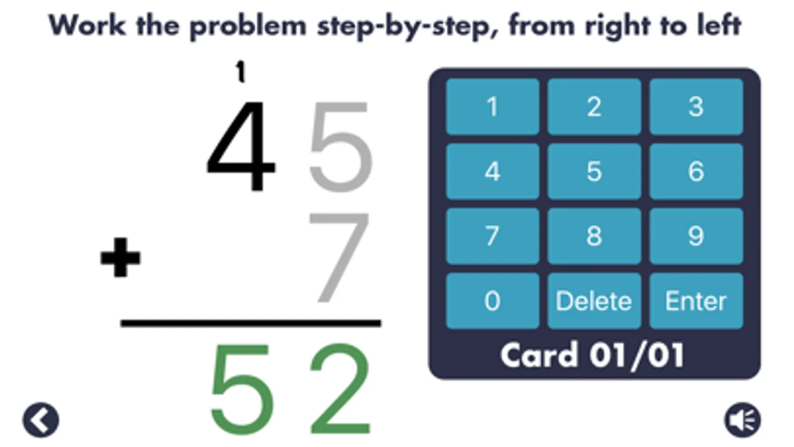 • See how to properly arrive at each answer with a guided step-by-step experience that teaches valuable math skills such as "carrying the one" and "borrowing."