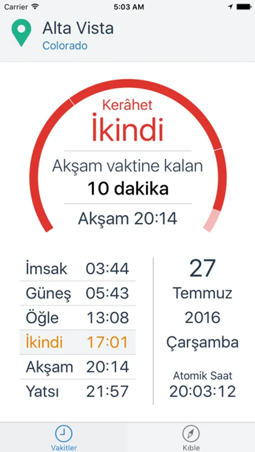 İçinde olduğunuz vakti ve sonraki vakte kalan süreyi ve günlük vakitleri gösterir.