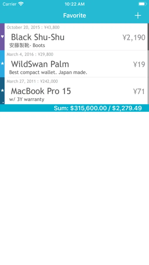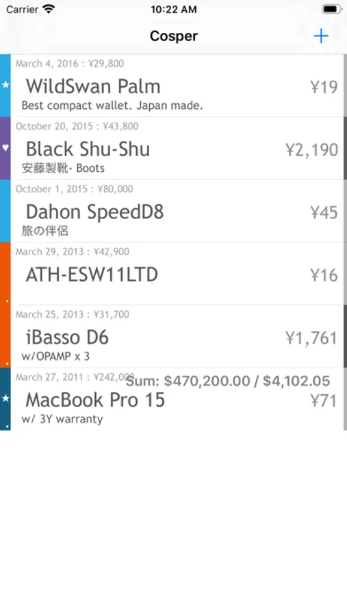 You input Product name, price, date and how many time you have used, then list shows its cost per day or per use.