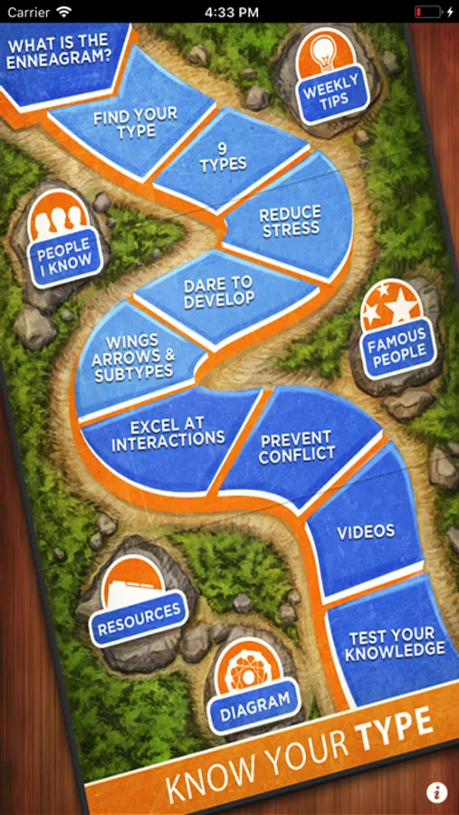 FIND YOUR TYPE: In this interactive game, discover which of the 9 Enneagram types best describes you. In addition, read a clear, concise overview of the 9 types, and store information about your friends’ types for future reference.