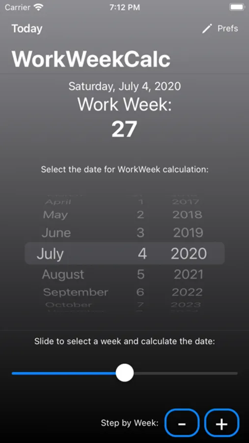 This application will quickly enable you to know the exact work week of July 4th, or the date of work week 42!