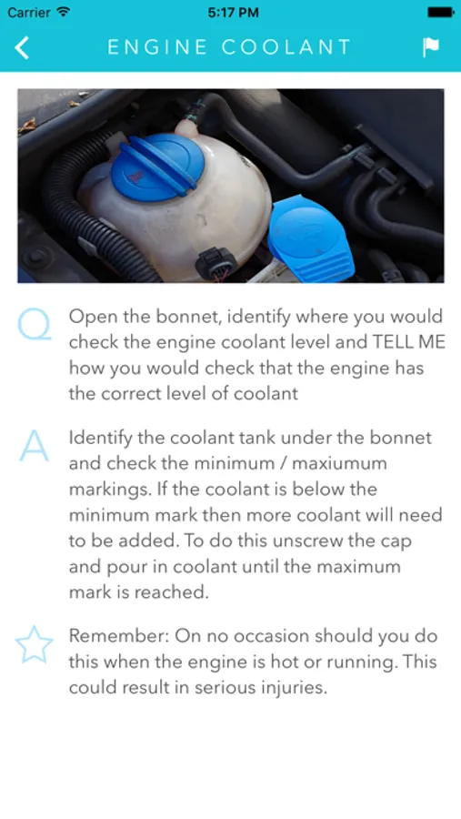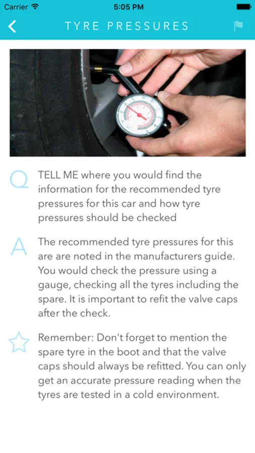 one ‘tell me’ question,where you have to explain how you’d carry out the vehicle safety check